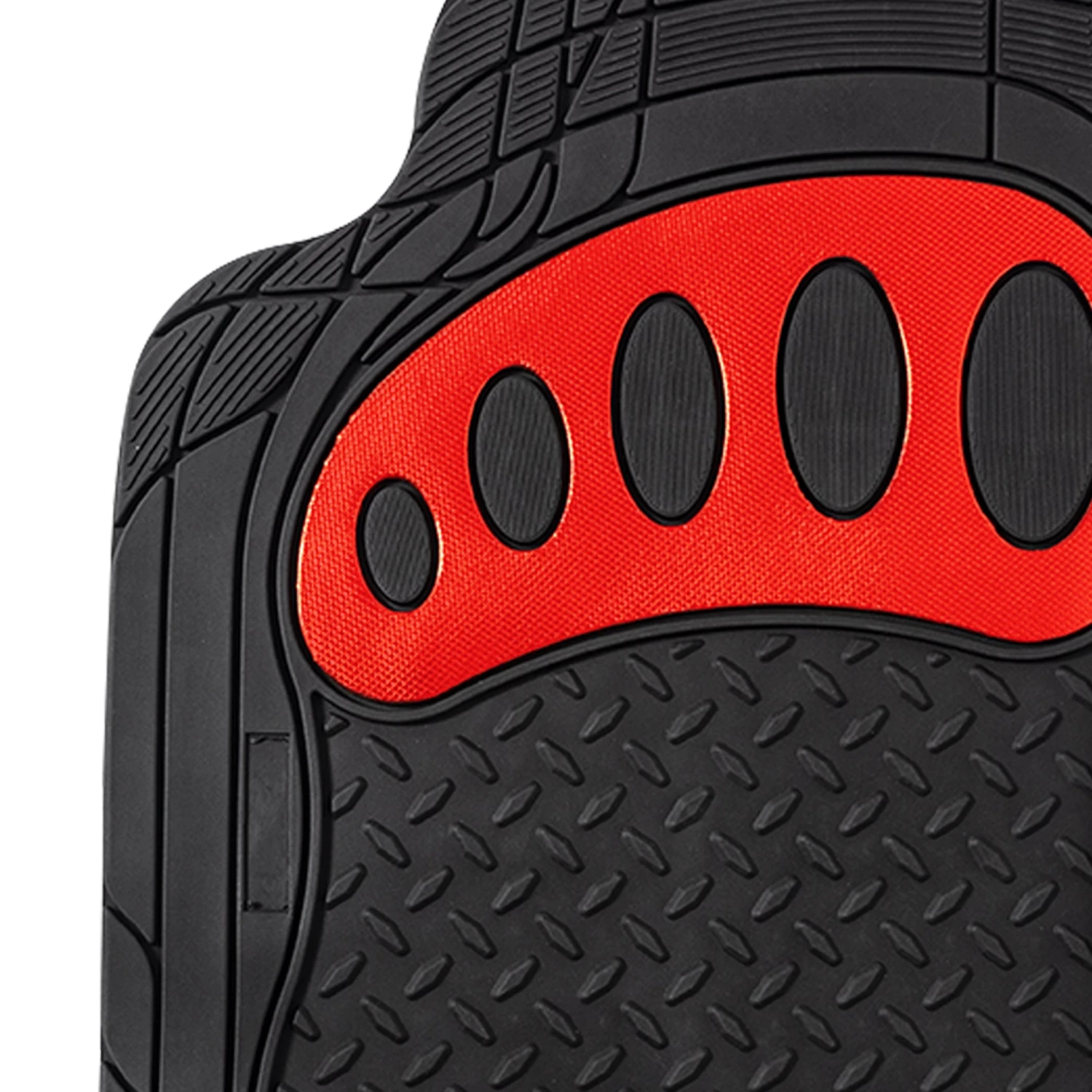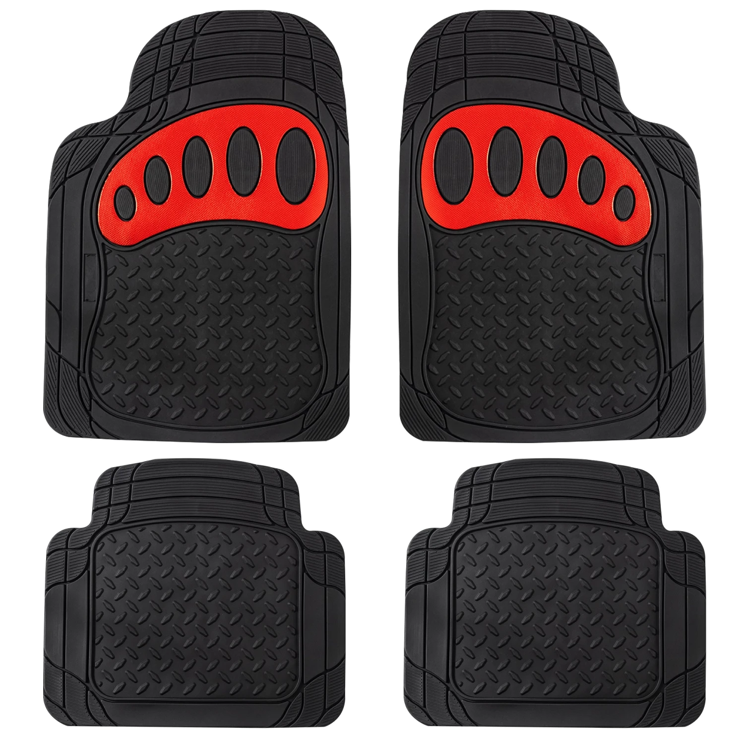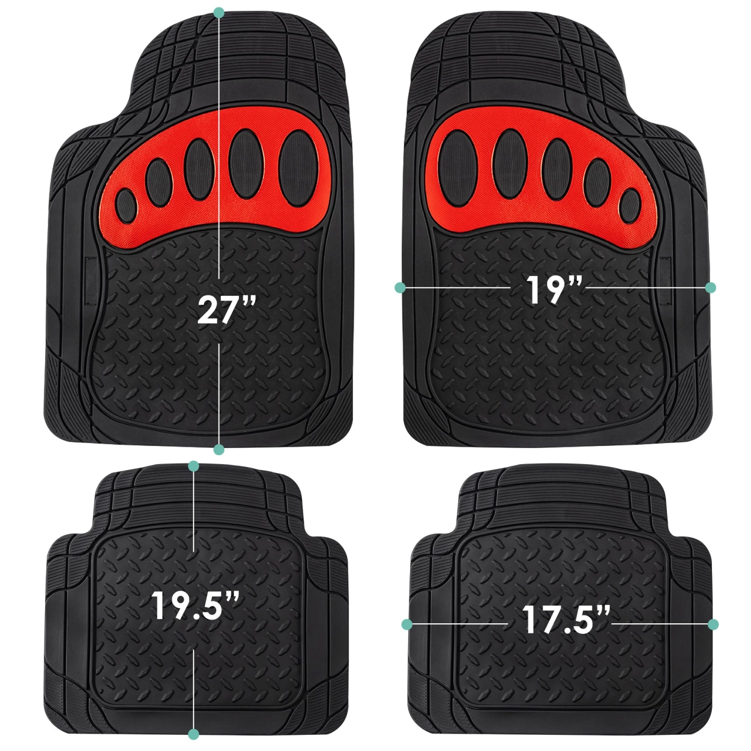 4 Piece Liners Trimmable ClimaProof Non-Slip Vinyl Floor Mats – Full Set Red(Trimmable Climaproof Non Slip Rubber Floor Mats With Footprint Design Full Set Red)