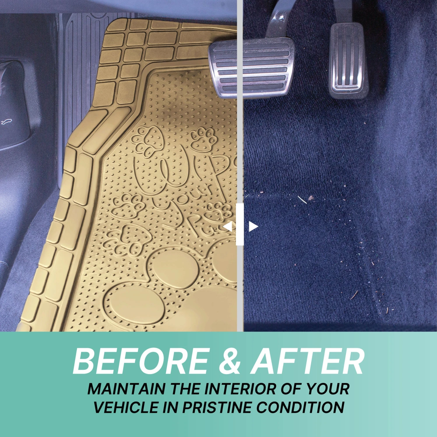 - ADORABLE PAW-PRINT DESIGN: These mats combine functionality and charm, providing a perfect fit for any vehicle with their universal design, along with a cute and adorable design that will remind you of that’special furry friend.