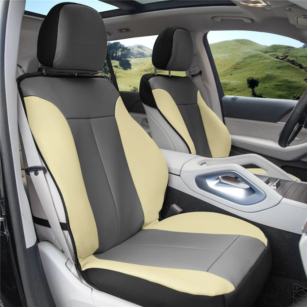 Apex90 Superior Faux Leather Car Seat Covers – Front Set Beige(Apex90 Superior Faux Leather Car Seat Covers Front Set Beige)