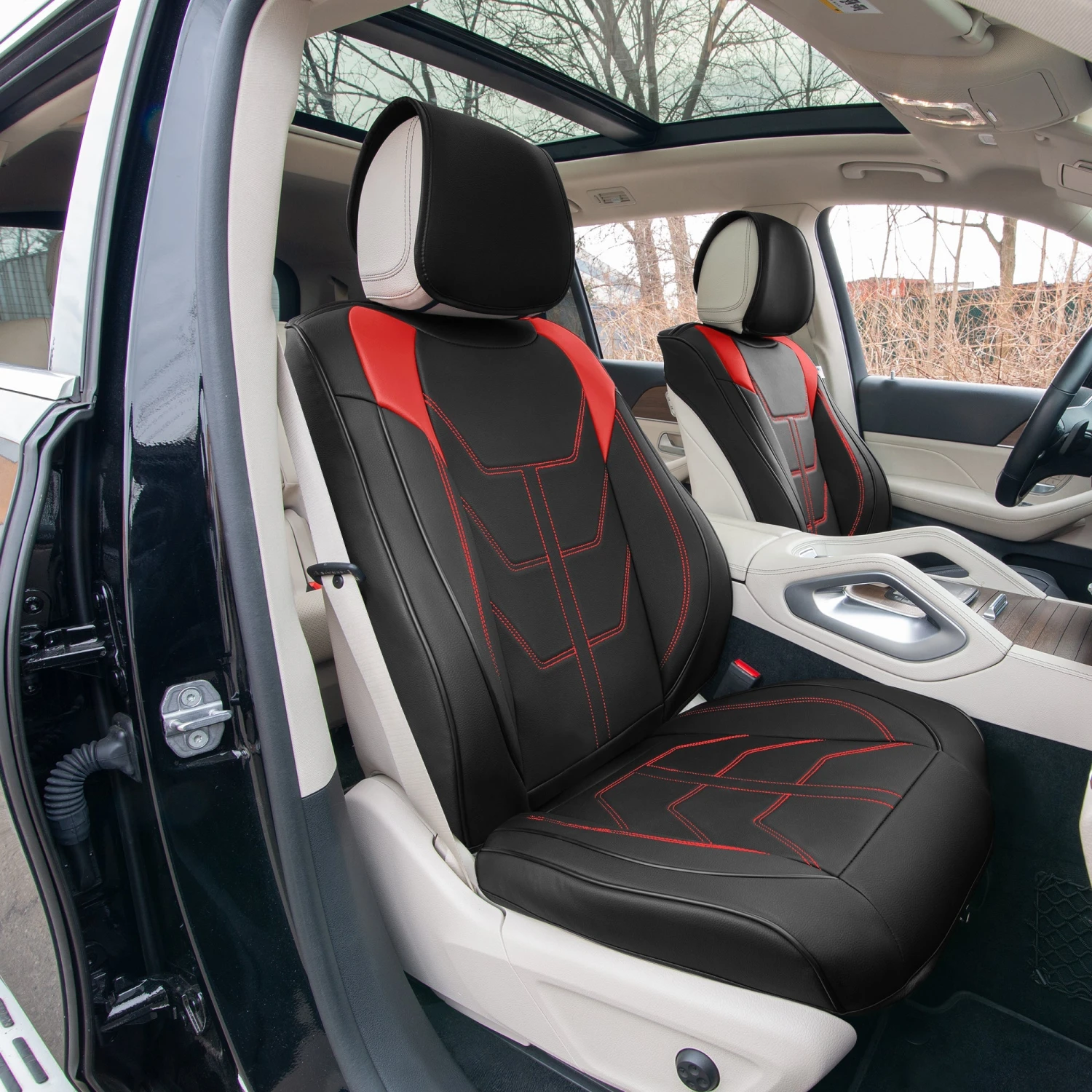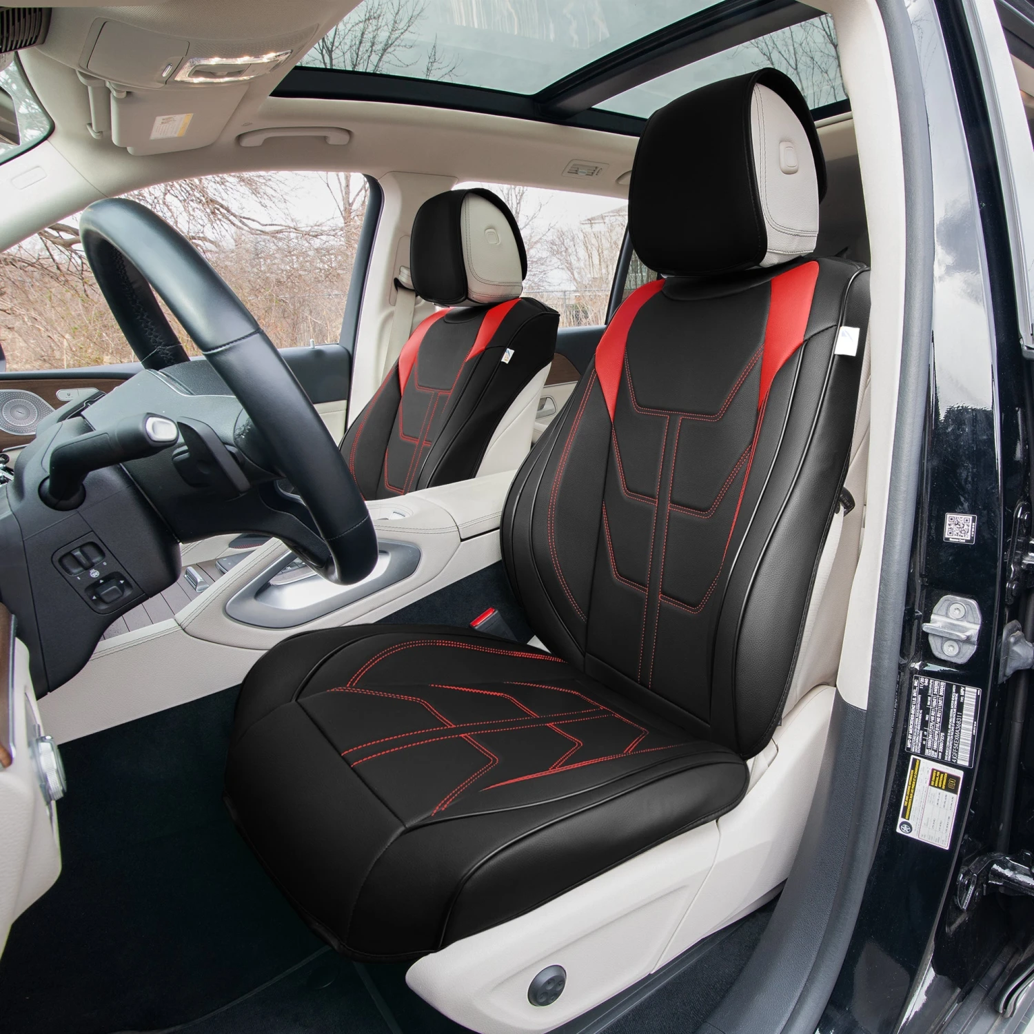 - UNIVERSAL FIT – These seat covers feature a bold aesthetic that is engineered to accommodate the interiors of most cars, trucks, minivans, and SUVs. The universal fit assimilates with the upholstery, giving your vehicle a streamlined atmosphere. Transform any interior into a striking, dynamic control room.