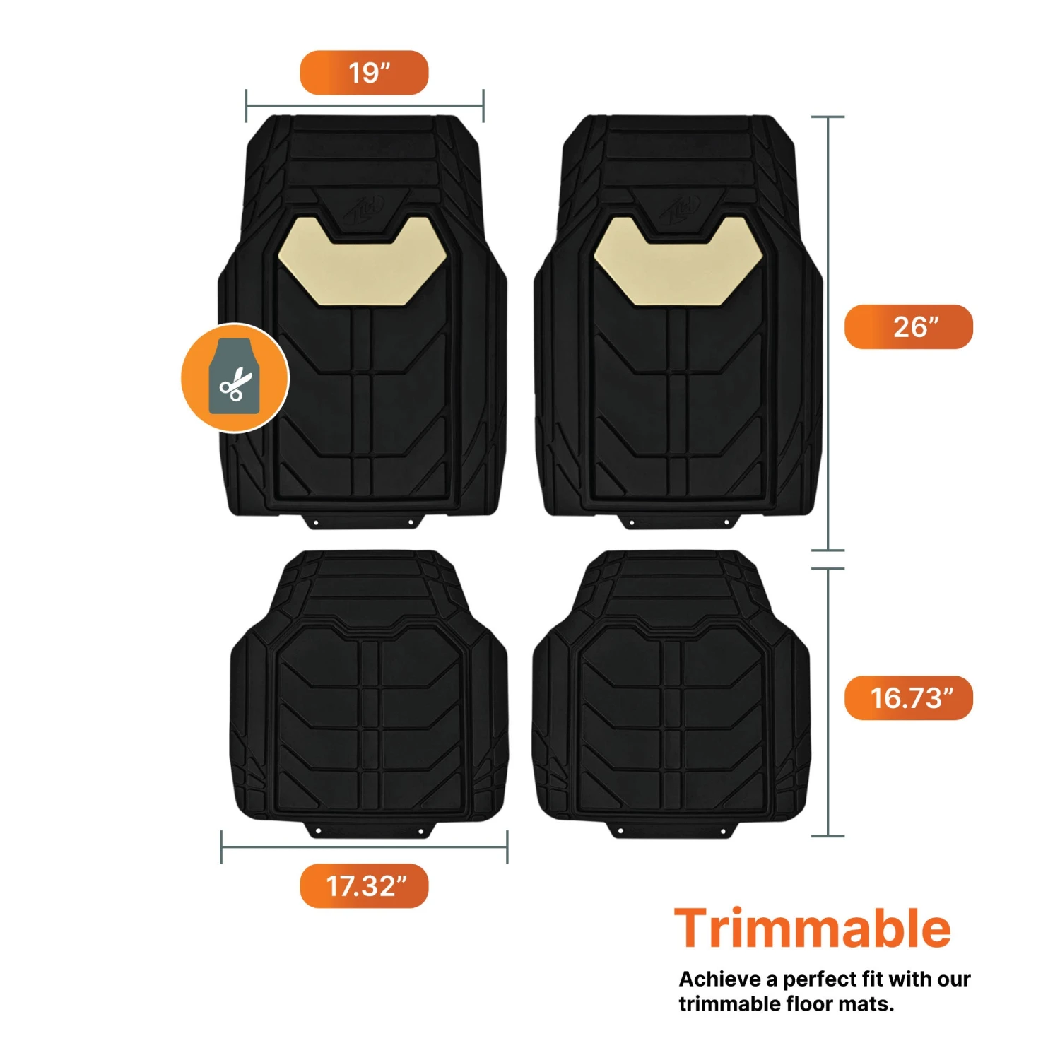 - UNIVERSAL FIT WITH TRIMMABLE DESIGN: The mats feature a universal fit, accommodating a wide range of vehicle makes and models. The trimmable design allows users to tailor the mats to their specific vehicle dimensions for enhanced coverage.
