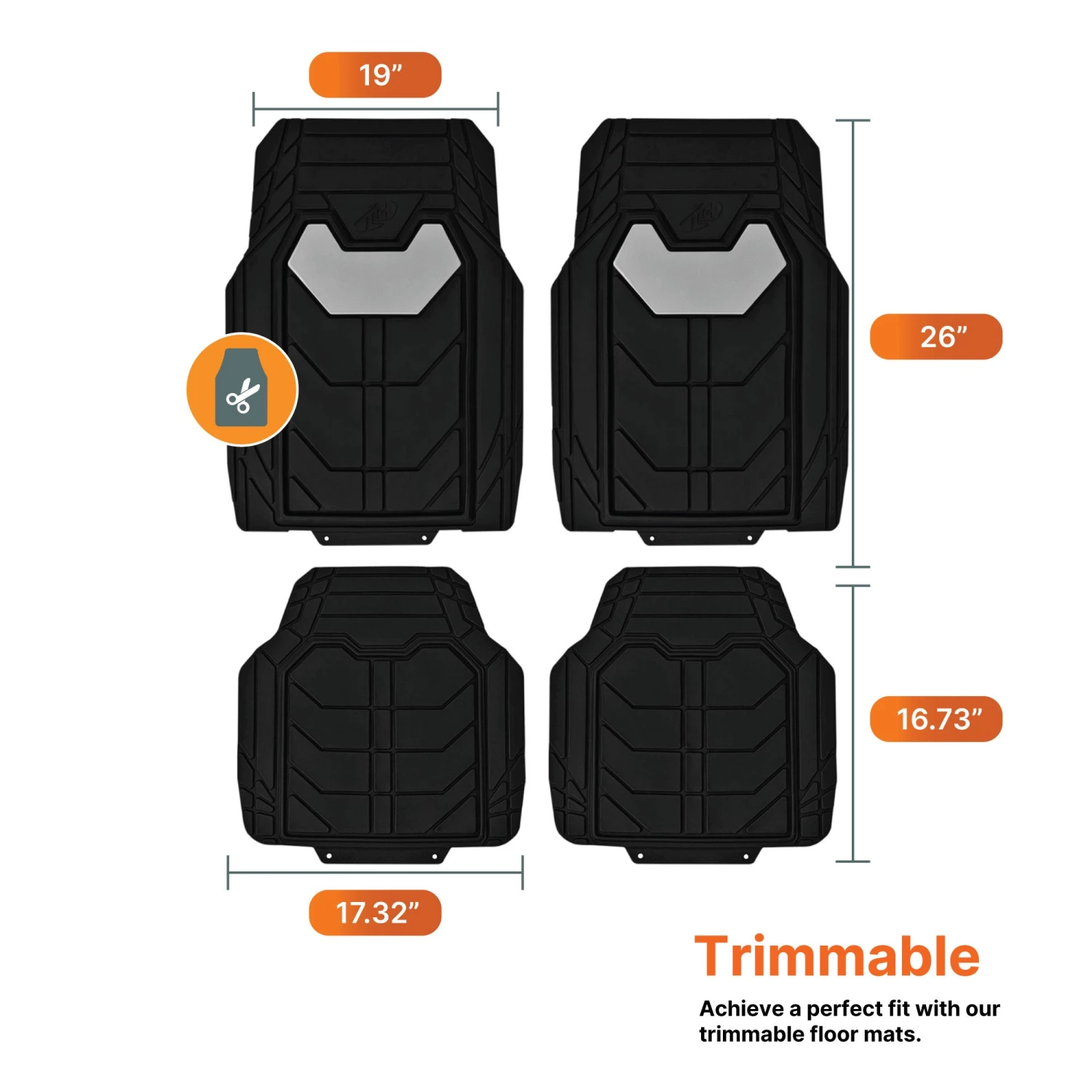 - UNIVERSAL FIT WITH TRIMMABLE DESIGN: The mats feature a universal fit, accommodating a wide range of vehicle makes and models. The trimmable design allows users to tailor the mats to their specific vehicle dimensions for enhanced coverage.