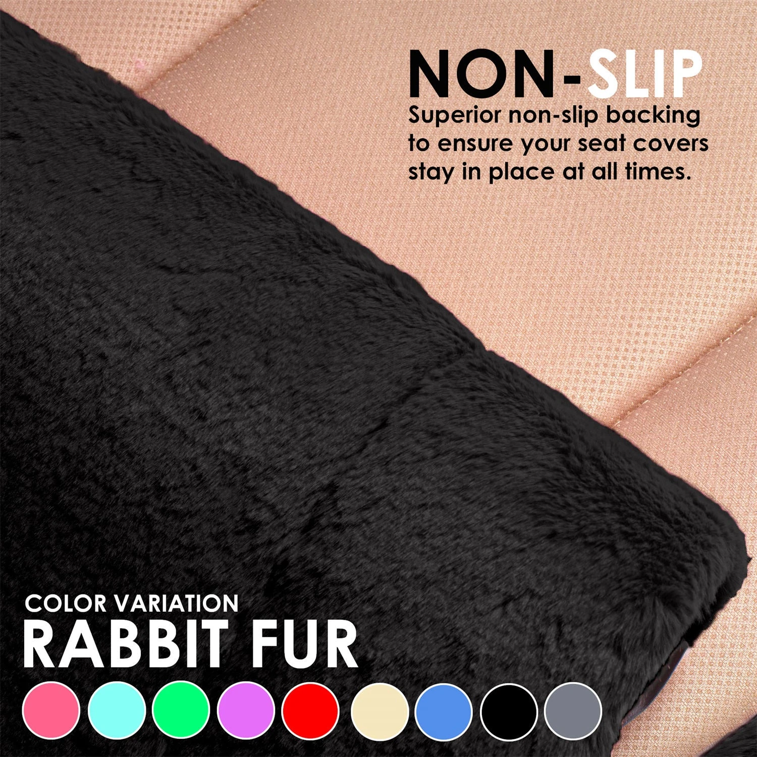 Doe16 Faux Rabbit Fur Car Seat Cushions – Front Set Black(Doe16 Faux Rabbit Fur Car Seat Cushions Front Set Black)