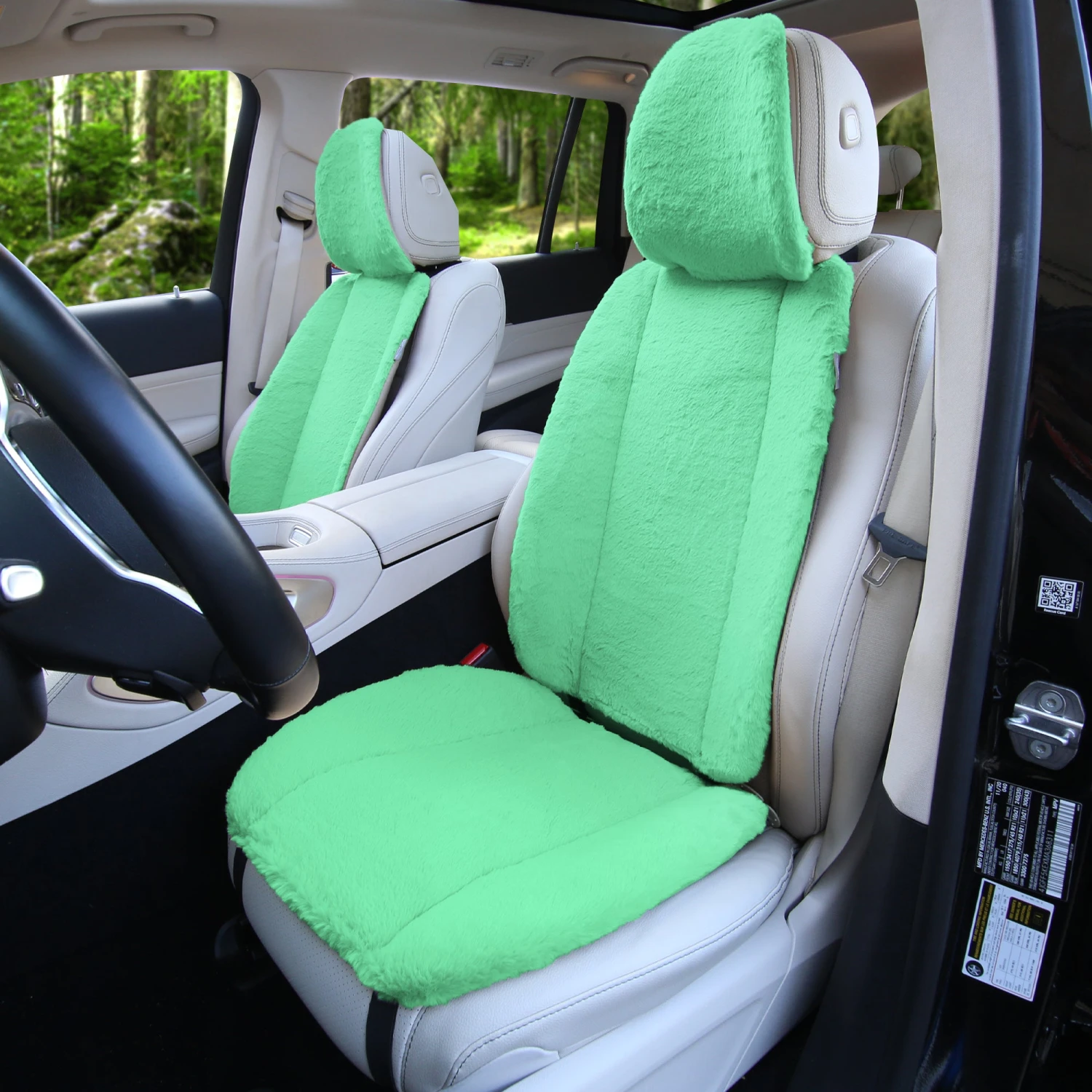 Doe16 Faux Rabbit Fur Car Seat Cushions – Front Set Mint(Doe16 Faux Rabbit Fur Car Seat Cushions Front Set Mint)