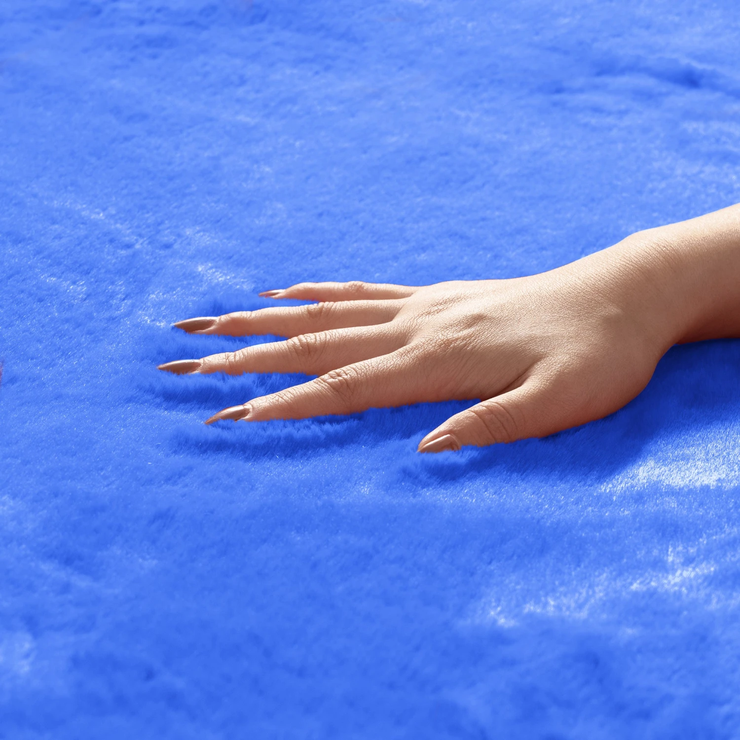 Doe16 Faux Rabbit Fur Non-Slip Floor Mats – Full Set Blue(Doe16 Faux Rabbit Fur Non Slip Floor Mats Full Set Blue)