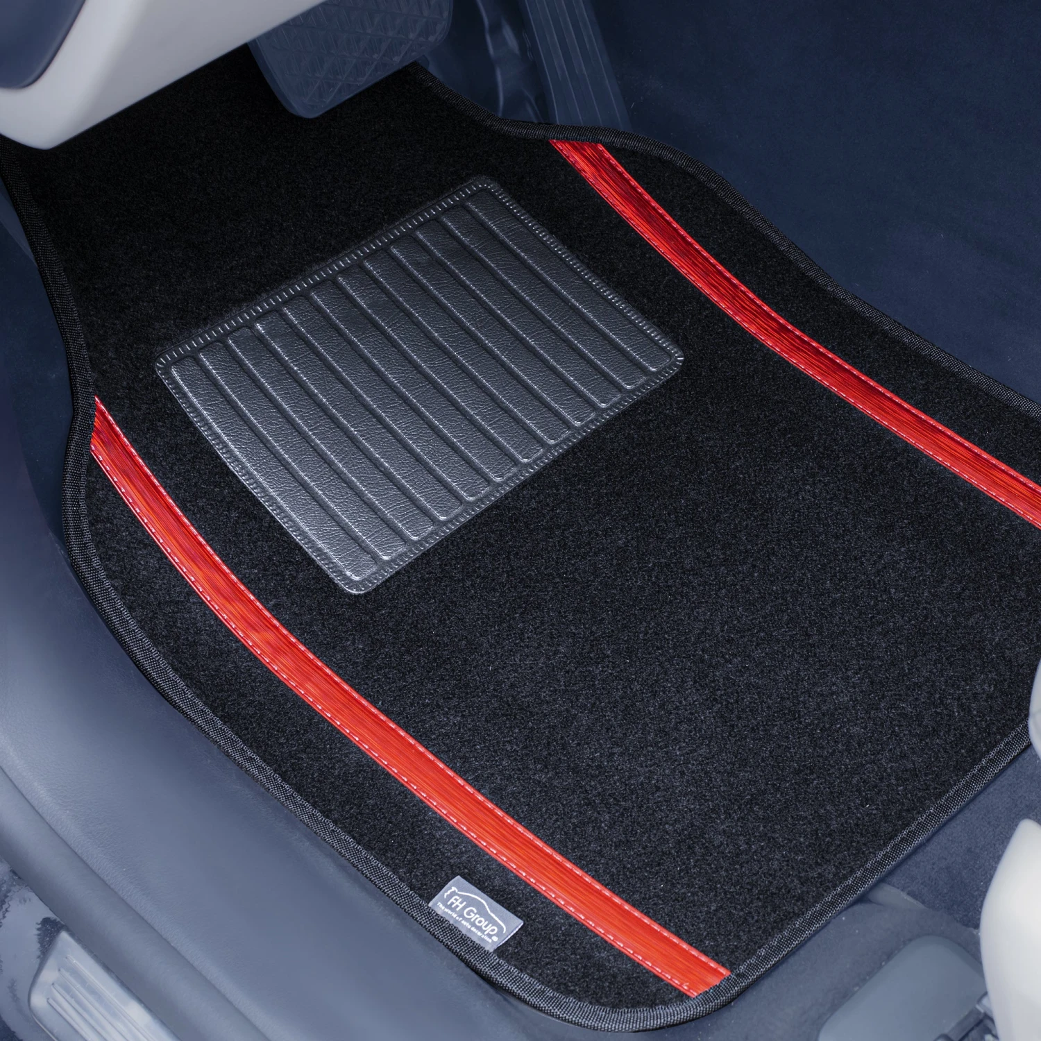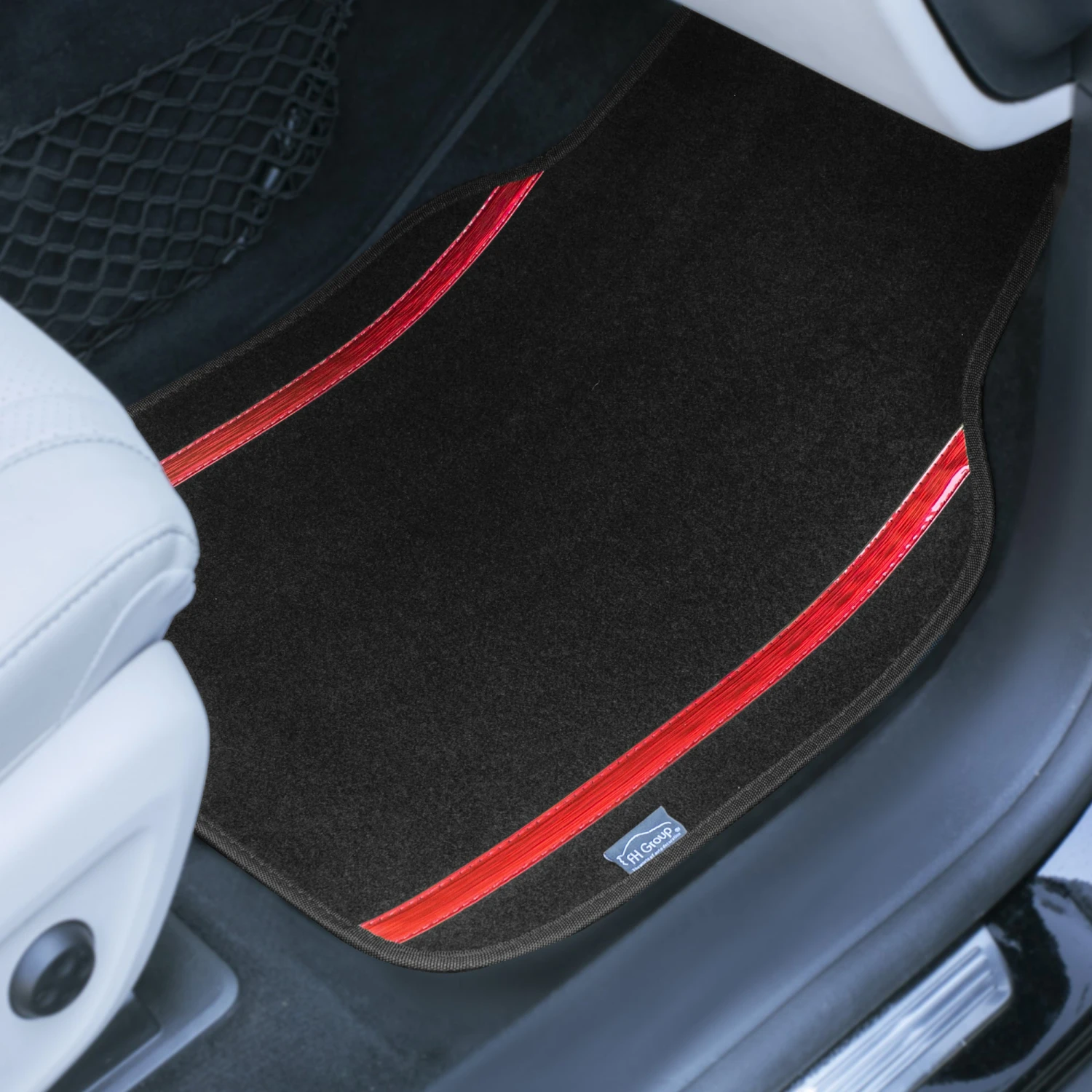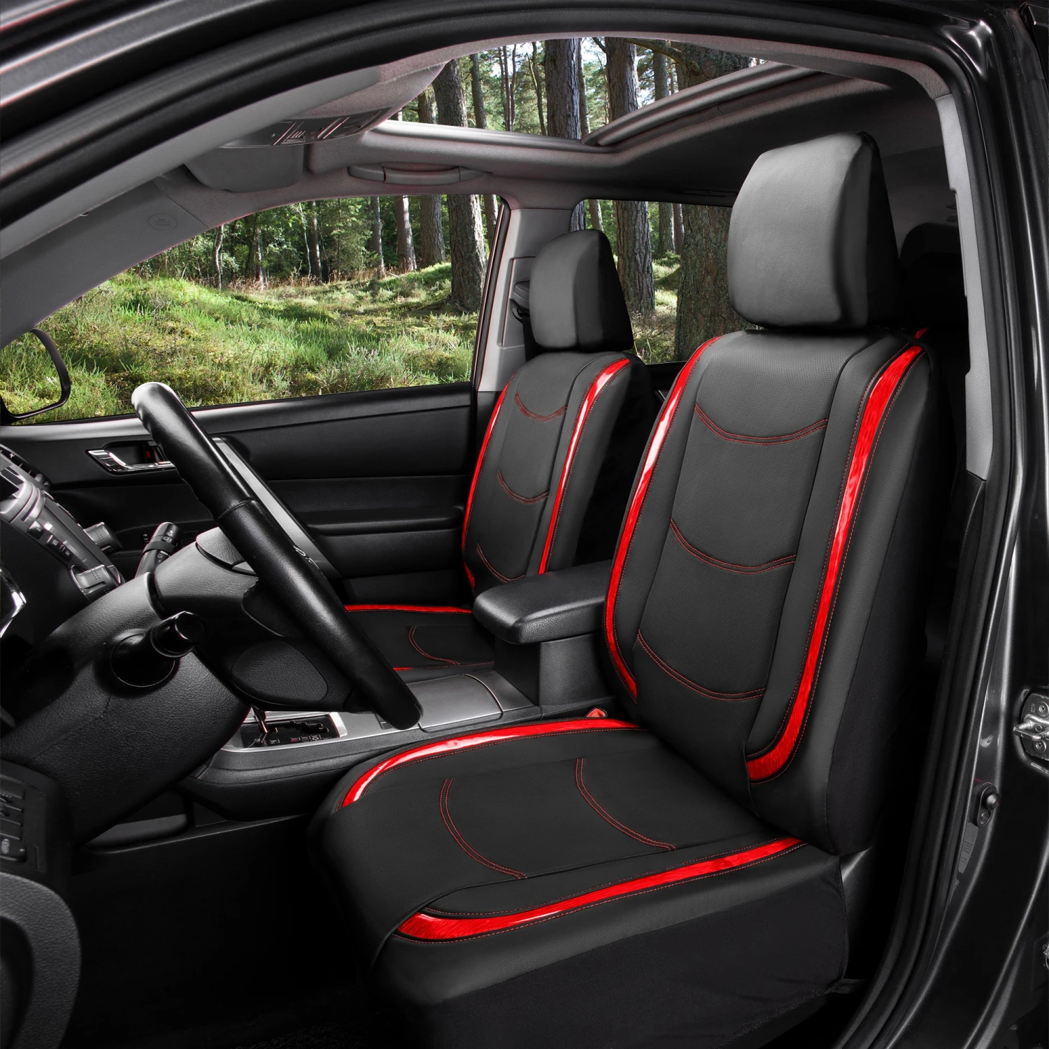 Galaxy13 Metallic Striped Deluxe Leatherette Seat Covers And Matching Floor Mats – Red Combo Set(Galaxy13 Metallic Striped Deluxe Leatherette Seat Covers And Matching Floor Mats Red Combo Set)