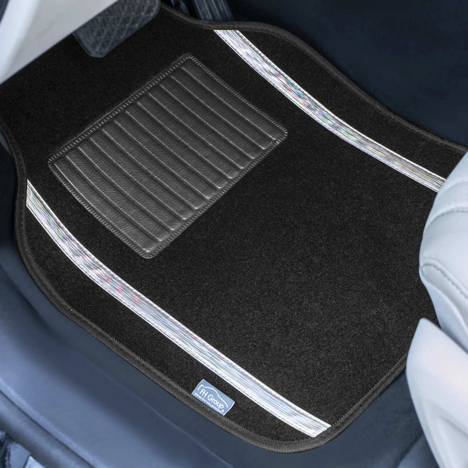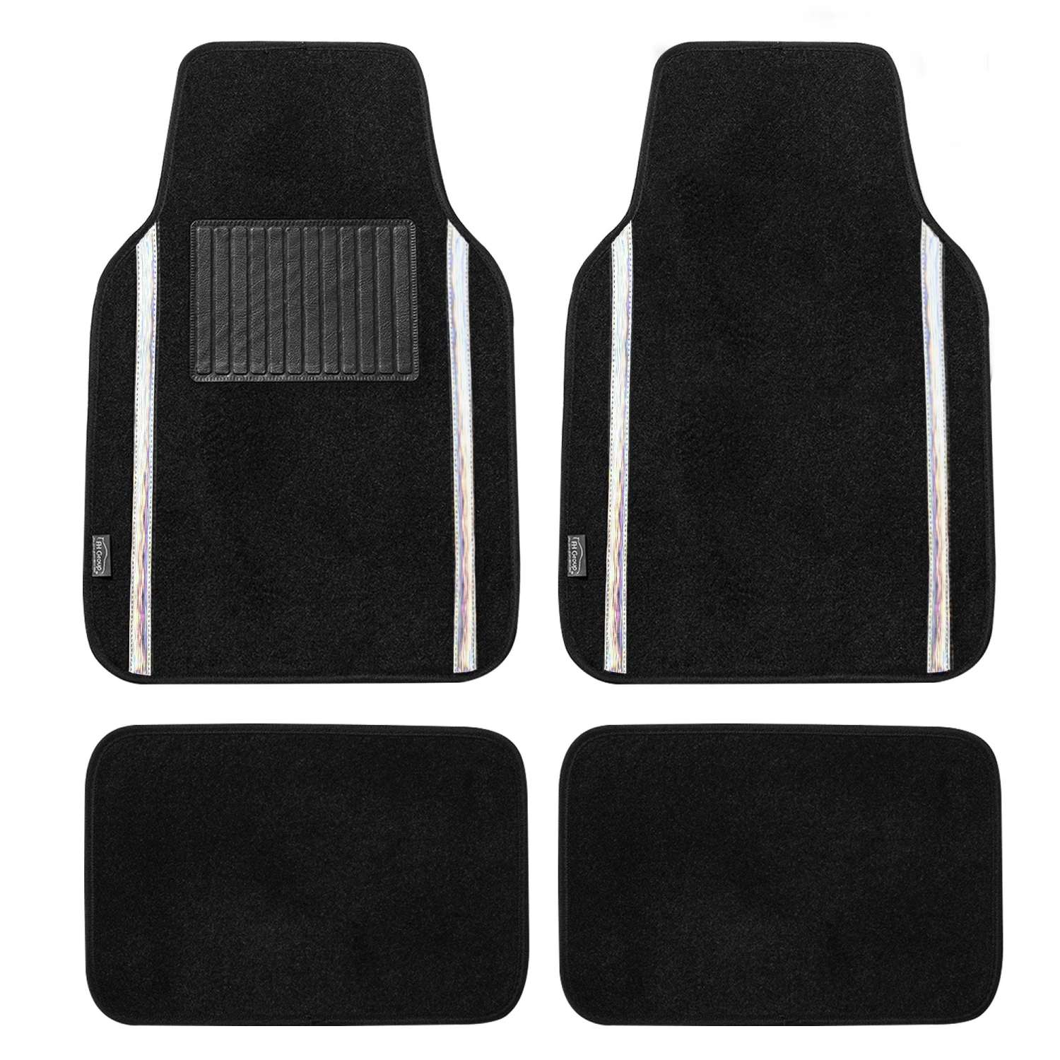 Galaxy13 Metallic Striped Deluxe Leatherette Seat Covers And Matching Floor Mats – White Combo Set(Galaxy13 Metallic Striped Deluxe Leatherette Seat Covers And Matching Floor Mats Gray Combo Set)