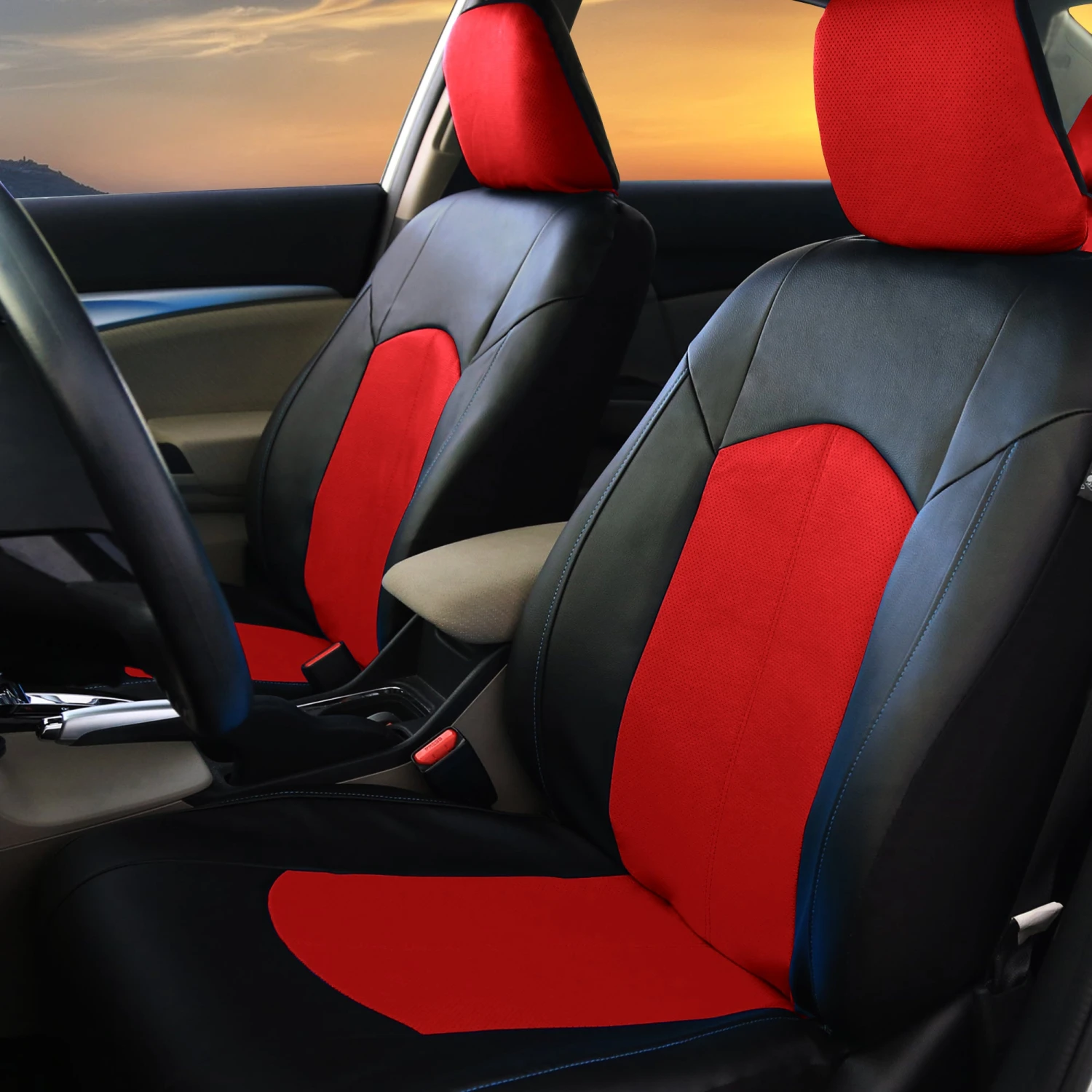 Highest Grade Faux Leather Seat Covers – Front Set Red(Highest Grade Faux Leather Seat Covers Front Set Red)