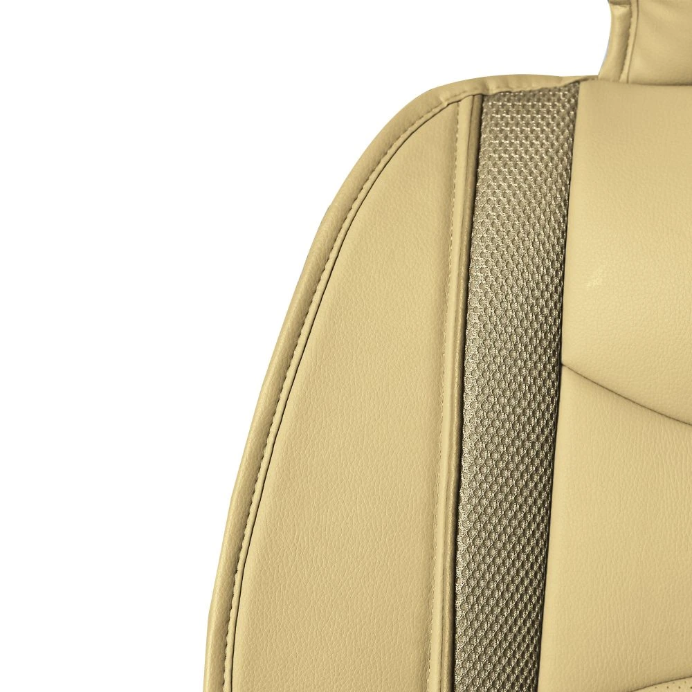 Material: Â Highest grade of faux leather with quilted design. Extra thick padding offers more cushioning and long comfort. Back is made with multiple pockets for easy storage.