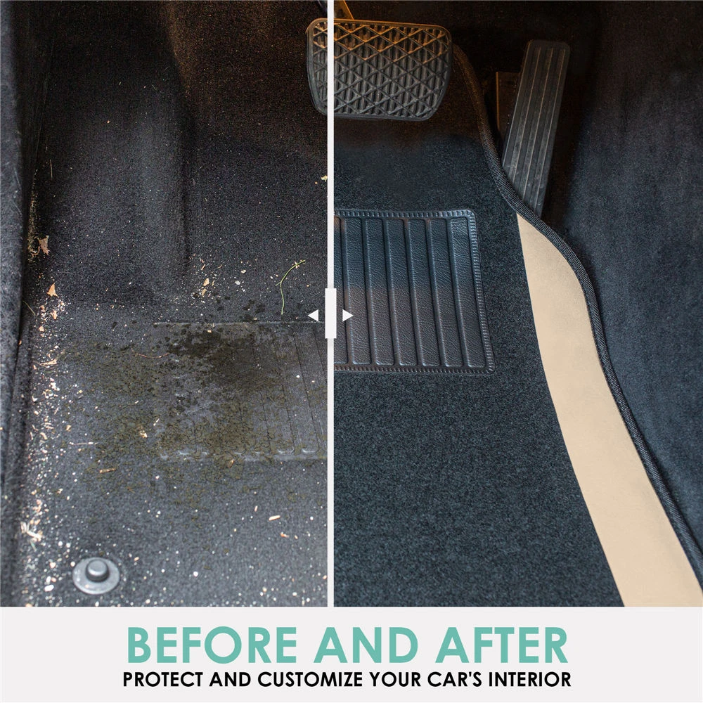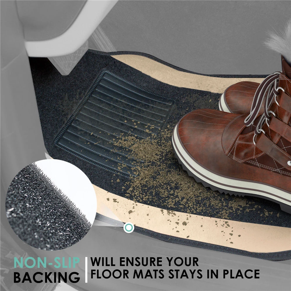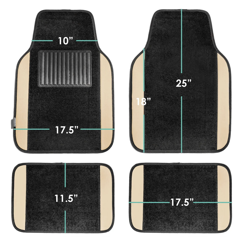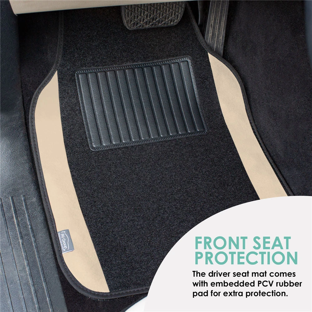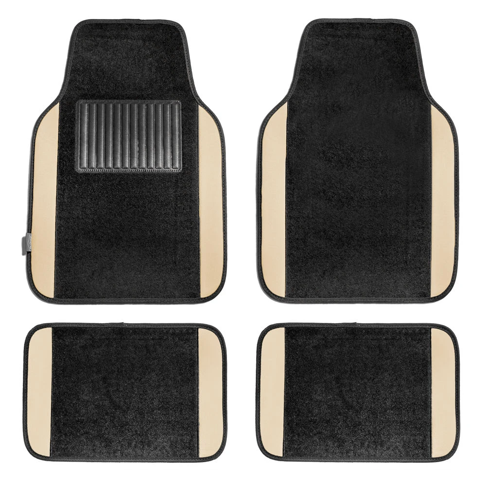 Non-Slip Carpet Floor Mats With Colored Trim – Full Set Beige(Non Slip Carpet Floor Mats With Colored Trim Full Set Beige)