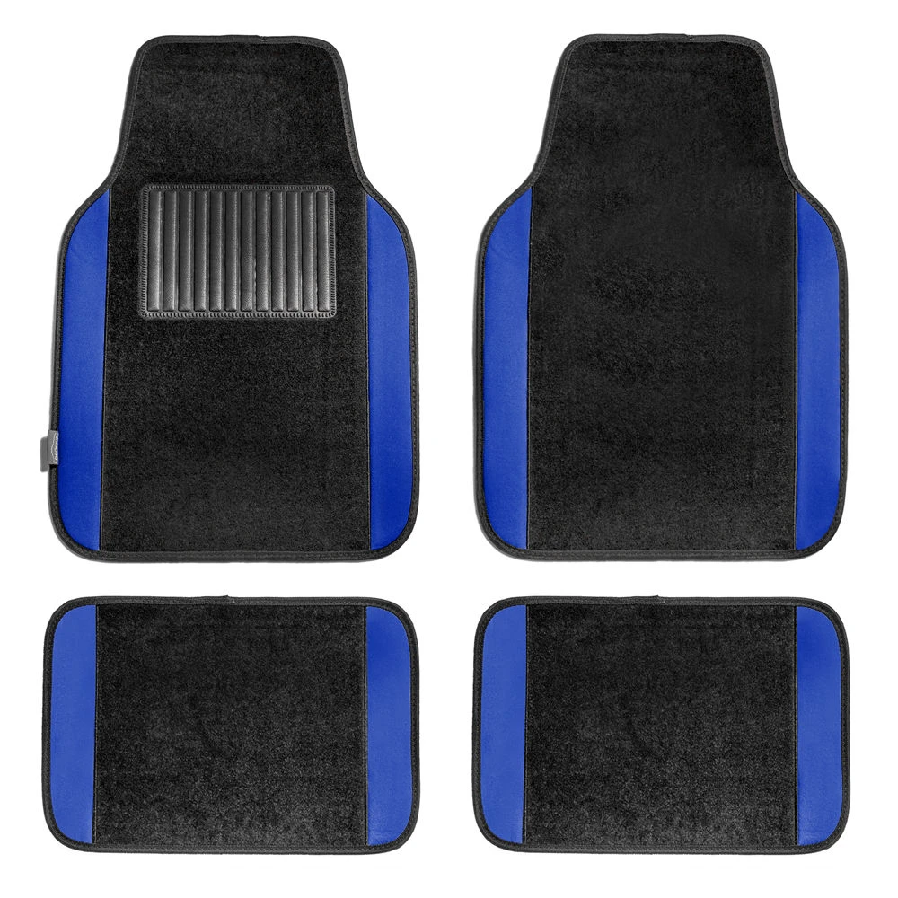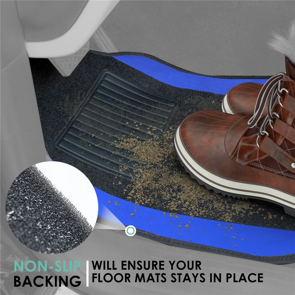 Non-Slip Carpet Floor Mats With Colored Trim – Full Set Blue(Non Slip Carpet Floor Mats With Colored Trim Full Set Blue)