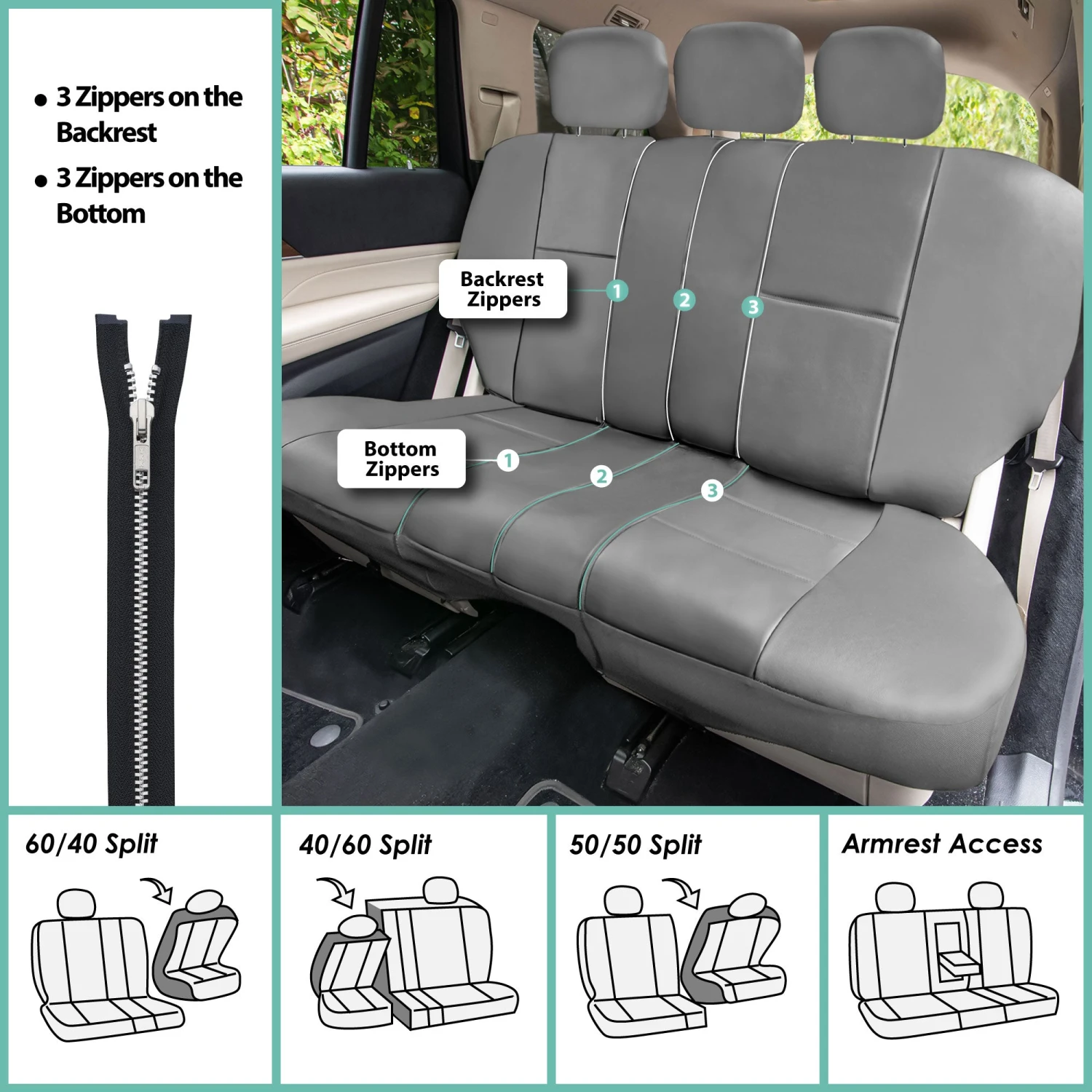 - Compatible with removable headrests and armrests only.