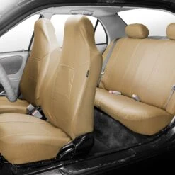 Royal PU Leather Seat Covers – Front Set Beige(Royal Pu Leather Seat Covers Front Set Beige)