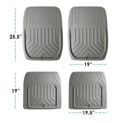 Faux Leather Deep Tray Floor Mats Full Set – Gray(Faux Leather Deep Tray Floor Mats Full Set Gray)