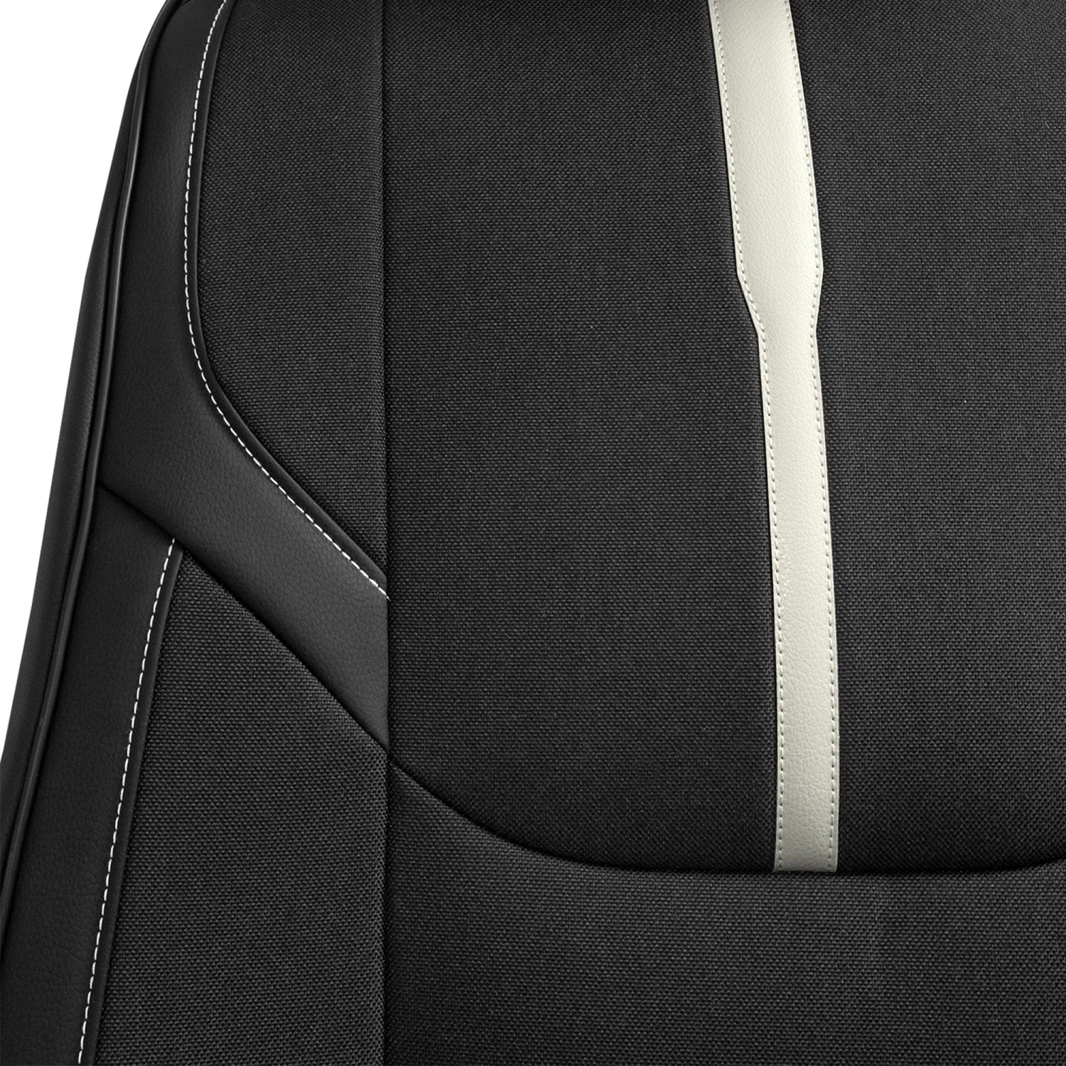 - Crisp woven Oxford with our deluxe leatherette trim to create a sleek look in minutes; Contrast stitching lends an eye-catching pop to personalize your ride