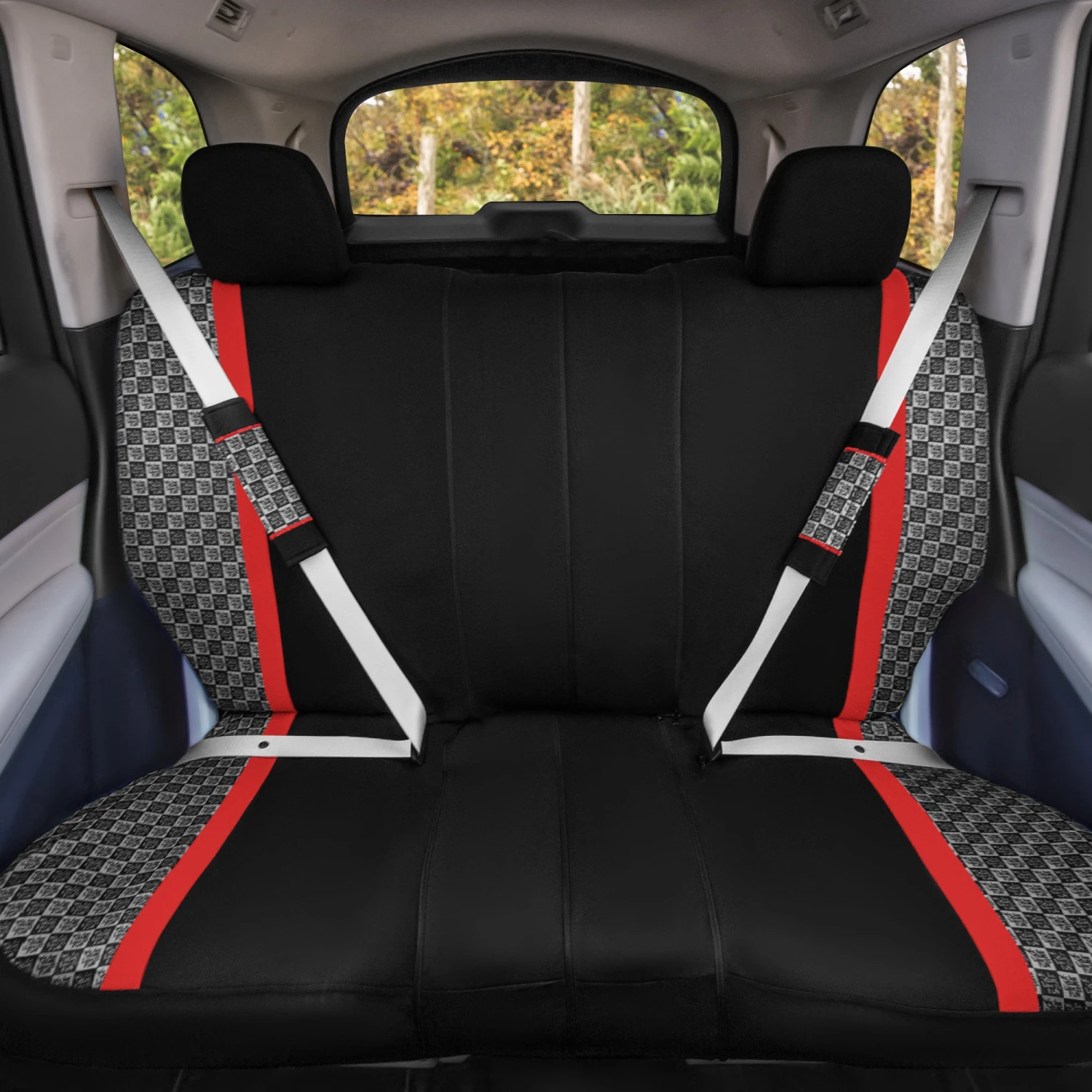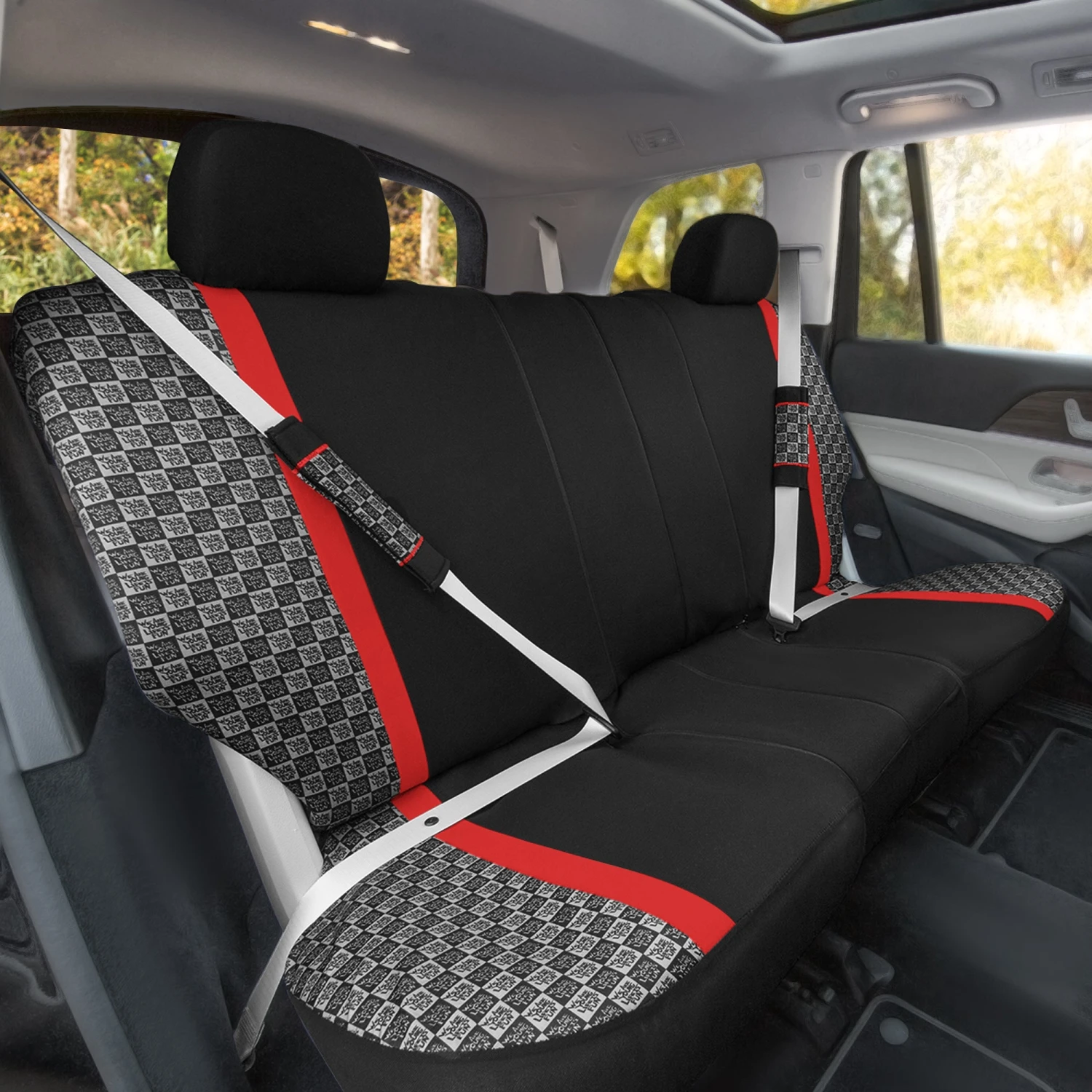 We Are Young Life Is Fun Checker Printed Seat Covers – Combo Full Set Red(We Are Young Life Is Fun Checker Printed Seat Covers Combo Full Set Red)