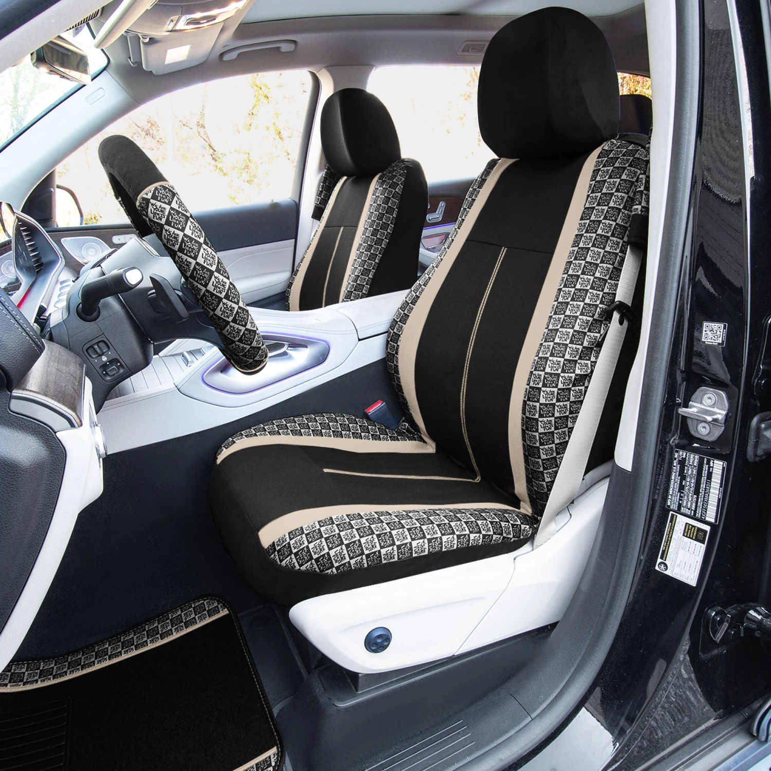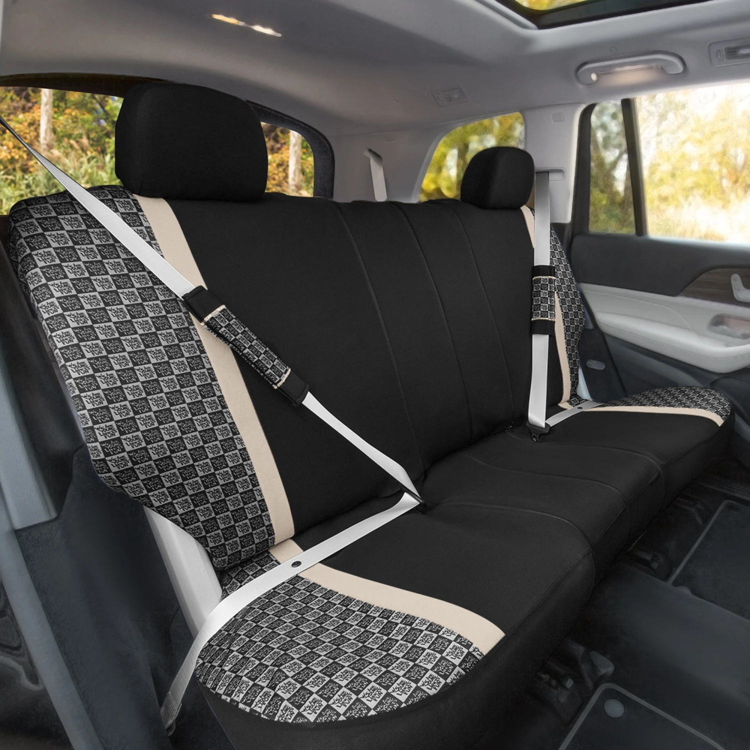 BOLD YET NEUTRAL CHECKER PRINT DESIGN: Featuring a lively checker print, this set strikes the perfect balance between bold personality and neutral tones, elevating your car’s interior with a timeless yet playful aesthetic.